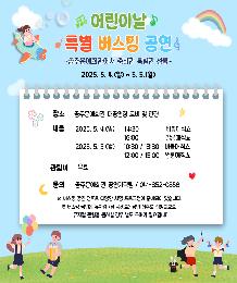 총 게시물 3개(1/1페이지) 전체 검색 금난새와 함께하는 마티네 콘서트 [꽃과 사랑의 노래] 로비 이벤트 행사기간 2025-05-13 행사대상관람객 행사인원0 명 어린이날 특별 버스킹 공연 행사기간 2025-03-21 행사대상어린이 행사인원0 명 연극 친정엄마와 2박3일 설문조사 이벤트 행사기간 2025-03-13 행사대상연극 친정엄마와 2박3일 관람객 행사인원30 명