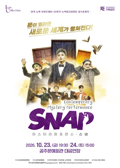 2026 01월 02월 03월 04월 05월 06월 07월 08월 09월 10월 11월 12월 기획공연 금난새와 함께하는 마티네 콘서트 Ⅵ [베버] 공연일시 2026-10-14 공연시간 11:00 공연장소 대공연장 자세히보기 기획공연 아토콘 Ⅳ [배우 강석우] 공연일시 2026-10-17 공연시간 14:00 공연장소 대공연장 자세히보기 기획공연 넌버벌 퍼포먼스 [스냅] 공연일시 2026-10-23~2026.10.24 공연시간 23.(금) 19:30, 24.(토) 15:00 공연장소 대공연장 자세히보기