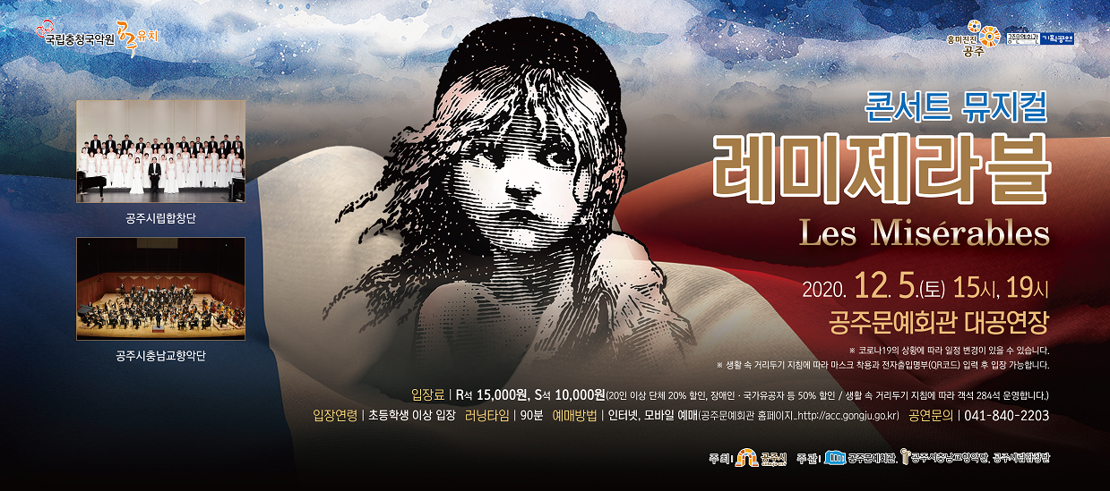 2020 01월 02월 03월 04월 05월 06월 07월 08월 09월 10월 11월 12월 기획공연 콘서트 뮤지컬 레미제라블 공연일시 2020-12-05 공연시간 15시, 19시 공연장소 대공연장 자세히보기