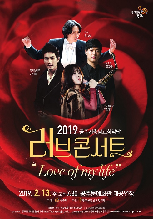 2019 01월 02월 03월 04월 05월 06월 07월 08월 09월 10월 11월 12월 기획공연 공주시충남교향악단 2019 러브콘서트 < Love of my life> 공연일시 2019-02-13 공연시간 19:30 / 90분 공연장소 대공연장 자세히보기