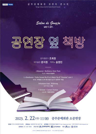 2023 01월 02월 03월 04월 05월 06월 07월 08월 09월 10월 11월 12월 예술단공연 발렌타인 콘서트 '사랑의 멜로디' 공연일시 2023-02-14 공연시간 19:30 공연장소 대공연장 예매하기 자세히보기 기획공연 살롱 드 공주-공연장 옆 책방 공연일시 2023-02-22 공연시간 전 11:00 공연장소 소공연장 자세히보기 기획공연 옥상달빛, 소란을 만나다 공연일시 2023-02-26 공연시간 17:00 공연장소 대공연장 자세히보기