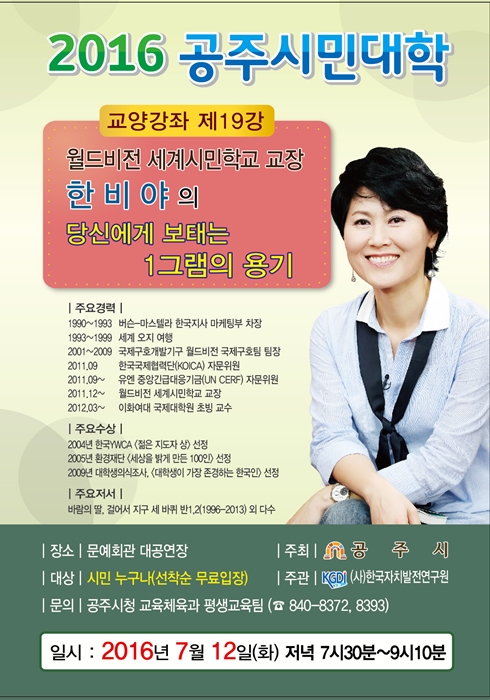 공주시민대학(제19강) 한비야의 당신에게보태는1g의용기