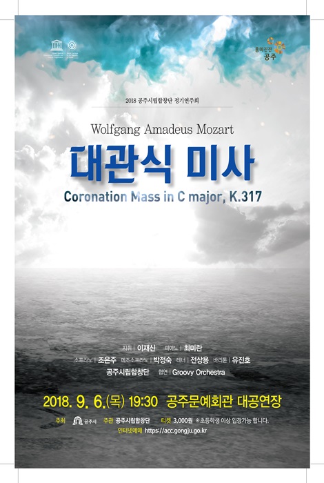 기획공연 공주시립합창단 2018. 정기공연 공연기간2018-09-06 공연예매2018-08-22 15:00 ~ 2018-09-06 15:00 공연시간19:30분 / 80분 공연장소대공연장 티켓정보전석 3,000원 , 장애인50%할인 관람등급초등생 이상 공연주최공주시 문화시설 사업소 공연문의041)840-2207 공지사항 공연소개 프로그램 출연진