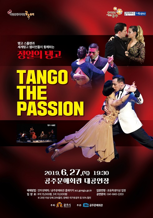 기획공연 탱고 더 패션 공연기간2019-06-27 공연예매2019-06-07 15:00 ~ 2019-06-27 15:00 공연시간19:30 / 90분 공연장소대공연장 티켓정보R석 15,000원, S석 10,000원 ※20인 이상 단체 20%할인, 장애인·국가유공자 등 50% 할인 관람등급초등학생이상 입장 공연주최공주 문예회관 공연문의041-840-2203 공지사항 공연소개 프로그램 출연진