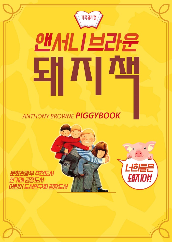 대관공연 앤서니브라운의 돼지책 공연기간2019-11-10 공연시간09:00~18:00 / 13:00, 15:00 공연장소대공연장 공연주최극단가람 공연문의010-2284-4842 공지사항 공연소개 프로그램 출연진