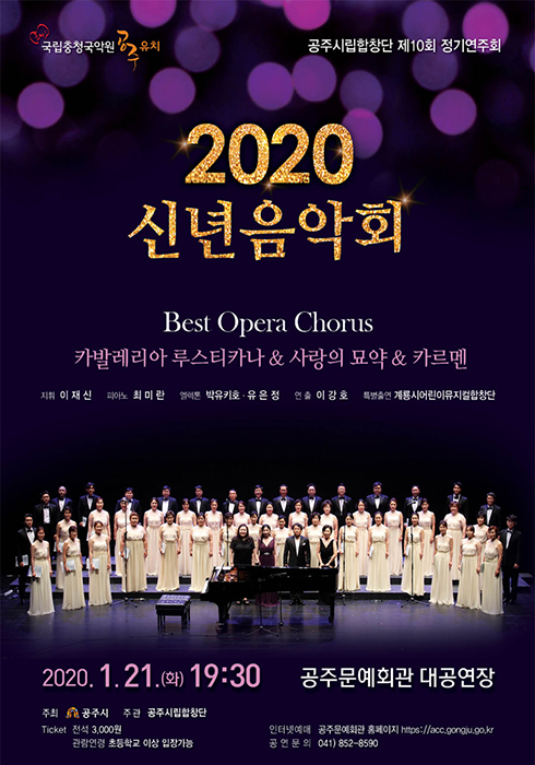 예술단공연 공주시립합창단 2020 신년음악회-Best Opera Chorus 공연기간2020-01-21 공연예매2020-01-07 15:00 ~ 2020-01-21 15:00 공연시간19:30 / 90 공연장소대공연장 티켓정보전석 3,000원 관람등급초등학생 이상 관람가 공연주최공주시립합창단 공연문의041)852-8590 공지사항 공연소개 프로그램 출연진