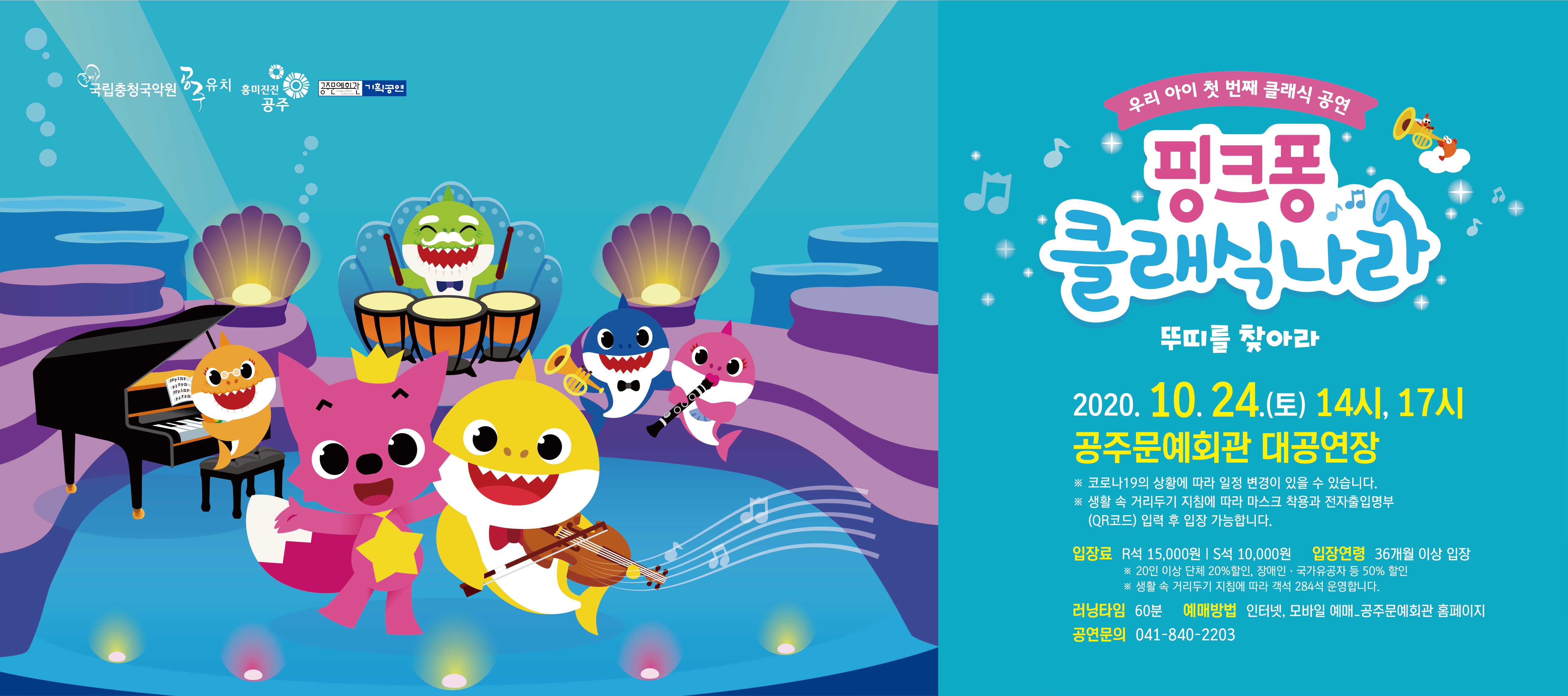 기획공연 핑크퐁 클래식나라 공연기간2020-10-24 공연예매2020-10-14 15:00 ~ 2020-10-24 13:00 공연시간14시, 17시 공연장소대공연장 티켓정보R석 15,000원 S석 10,000원 관람등급36개월 이상 공연주최공주문예회관 공연문의041-840-2203 공지사항 공연소개 프로그램 출연진