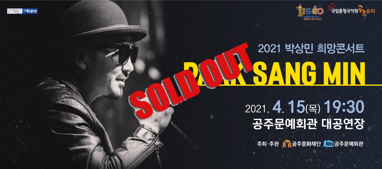 기획공연 [기획] 2021 박상민 희망콘서트 공연기간2021-04-15 공연예매2021-03-29 14:00 ~ 2021-04-15 21:00 공연시간19:30 공연장소대공연장 티켓정보R석 3만원, S석 2만원, A석 1만원 (단체20%, 복지50% 할인) 관람등급초등학생 이상 입장 가능 공연주최공주문화재단ㆍ공주문예회관 공연문의041) 852-0858 공지사항 공연소개 프로그램 출연진