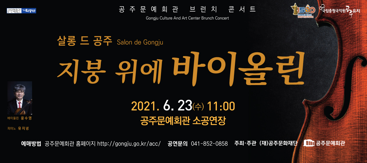 기획공연 [살롱 드 공주] 지붕 위에 바이올린 공연기간2021-06-23 공연예매2021-06-08 11:00 ~ 2021-06-23 10:00 공연시간11:00 공연장소소공연장 티켓정보전석 10,000원 관람등급초등학생 이상 입장 가능 공연주최공주문화재단ㆍ공주문예회관 공연문의041)852-0858 공지사항 공연소개 프로그램 출연진