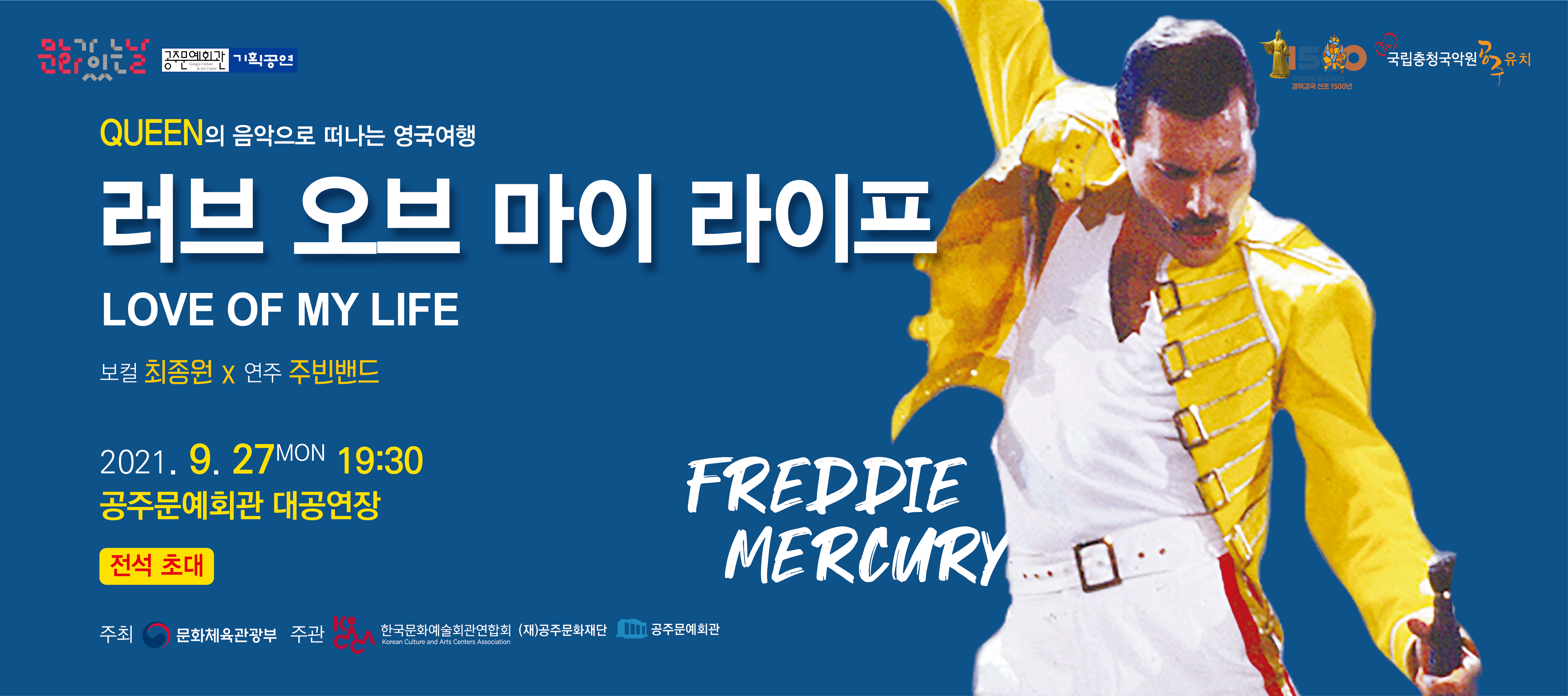 기획공연 [문화가 있는 날] 러브 오브 마이 라이프 공연기간2021-09-27 공연예매2021-08-30 14:00 ~ 2021-09-27 18:00 공연시간19:30 공연장소대공연장 티켓정보전석 초대 관람등급초등학생 이상 입장 가능 공연주최공주문화재단ㆍ공주문예회관 공연문의041-852-0858 공지사항 공연소개 프로그램 출연진