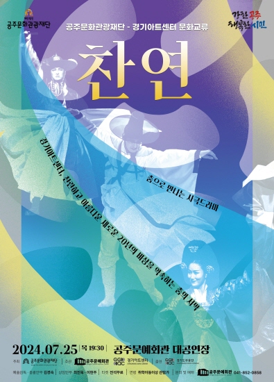기획공연 경기도무용단 전통무용 <찬연> 공연기간2024-07-25 공연시간19:30 공연장소대공연장 티켓정보전석 무료 관람등급취학아동이상관람가 공연주최주관: 공주문예회관, 경기아트센터(경기도무용단) 공연문의041-852-0858 공지사항 공연소개 프로그램 출연진
