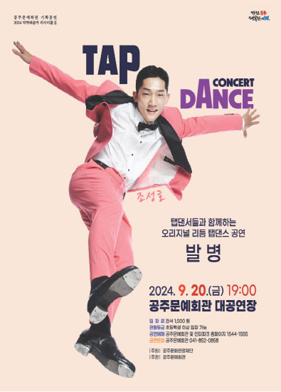 기획공연 지역예술가 리사이틀2 <리듬 탭댄스 콘서트 - 발병> 공연기간2024-09-20 공연시간19:00 공연장소대공연장 티켓정보전석 1,000원 관람등급초등학생 이상 관람 가능 공연주최공주문예회관 공연문의041-852-0858 공지사항 공연소개 프로그램 출연진