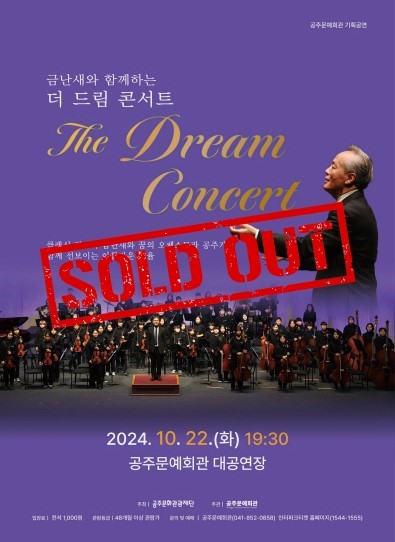 기획공연 금난새와 함께하는 꿈의 오케스트라의 <더 드림 콘서트> 공연기간2024-10-22 공연시간19:30 공연장소대공연장 티켓정보전석 1,000원 관람등급48개월 이상 관람가 공연주최공주문화관광재단 공연문의041-852-6057 공지사항 공연소개 프로그램 출연진