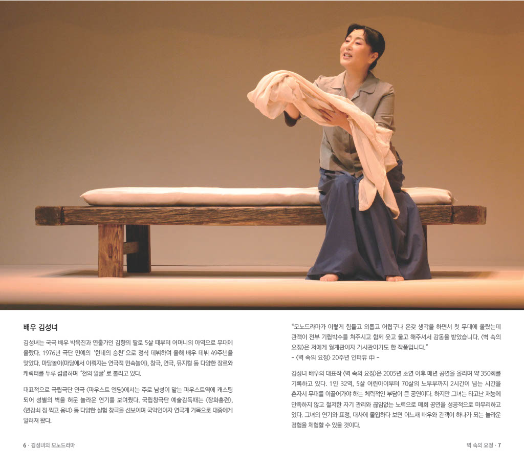 "흔히 배우를 ‘천의 얼굴을 가진 사람’이라고 하는데 김성녀는 그 말이 비유가 아니라 사실임을 보여준다."
