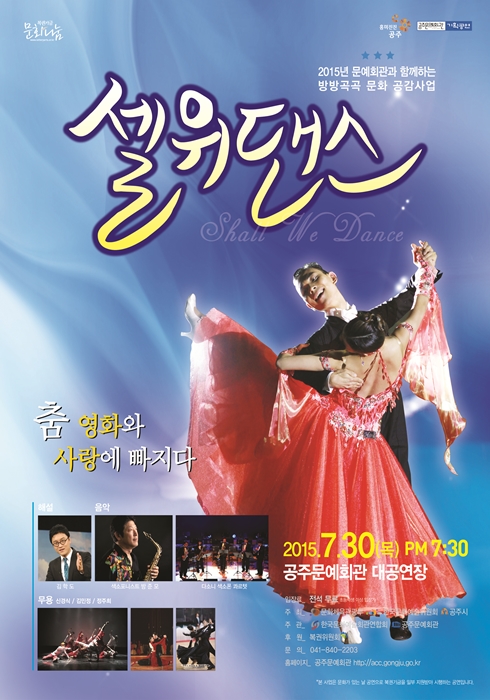 기획공연 셀위댄스 공연기간2015-07-30 공연시간19:30 / 100분 공연장소대공연장 티켓정보전석무료 관람등급초등학생이상입장 공연주최공주문예회관 공연문의공주문예회관 041) 840-2203 예매하기 공지사항 공연소개 프로그램 출연진