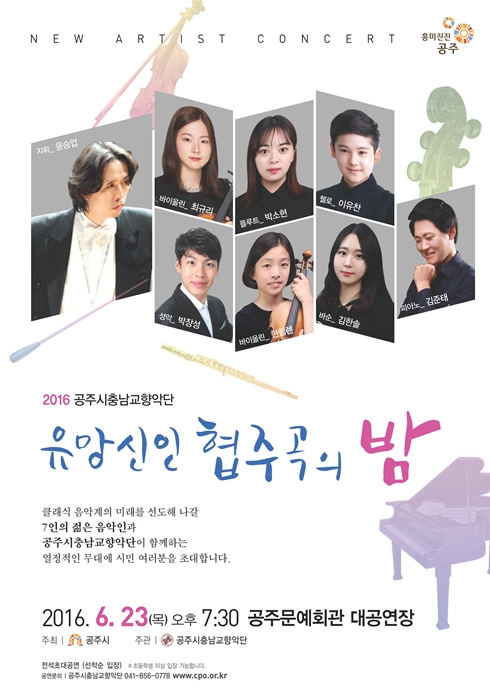 기획공연 2016 공주시충남교향악단 ‘유망신인 협주곡의 밤‘ 공연기간2016-06-23 공연시간19:30 / 70분 공연장소대공연장 티켓정보전석 무료 (선착순 입장) 관람등급초등생이상 입장가 공연주최공주시충남교향악단 공연문의공주시충남교향악단 041) 856-0778 예매하기 공지사항 공연소개 프로그램 출연진