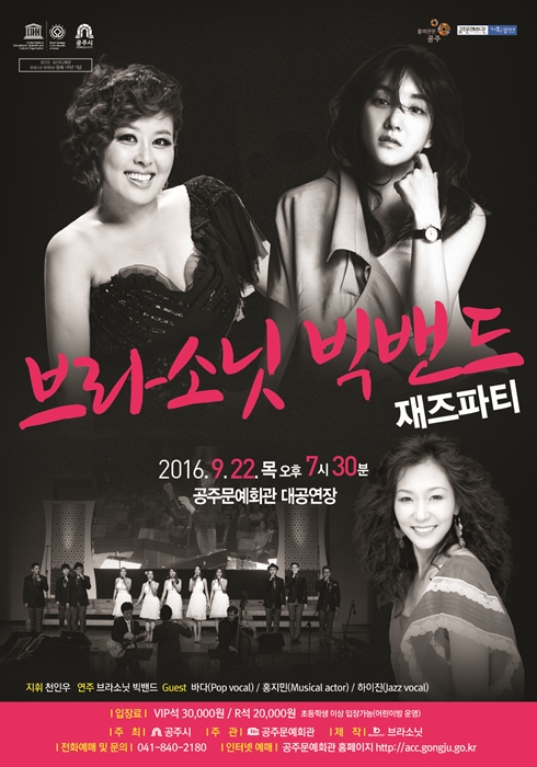 기획공연 브라소닛 빅밴드 재즈파티 공연기간2016-09-22 공연예매2016-08-30 15:00 ~ 2016-09-22 15:00 공연시간19:30 / 120분 공연장소대공연장 티켓정보VIP석:30,000원 R석:20,000원 관람등급초등학생 이상 입장가능 공연주최공주문예회관 공연문의041-840-2180 공지사항 공연소개 프로그램 출연진