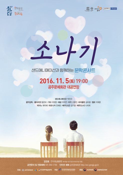 기획공연 샌드애니메이션 ‘소나기’ 공연기간2016-11-05 공연예매2016-10-25 14:00 ~ 2016-11-05 14:00 공연시간19:00 / 60분 공연장소대공연장 티켓정보전석 10,000원 관람등급48개월 이상 입장가 (어린이방운영) 공연주최공주문예회관 공연문의041-840-2180 공지사항 공연소개 프로그램 출연진