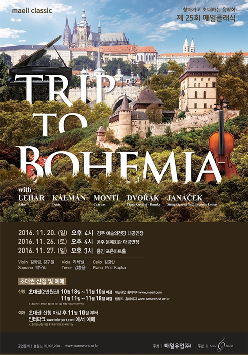 행사 찾아가고 초대하는 음악회 <제25회 매일클래식> 공연기간2016-11-26 공연시간16:00 공연장소대공연장 공연주최some world 공연문의썸월드 : 02-922-2284 공지사항 공연소개 프로그램 출연진