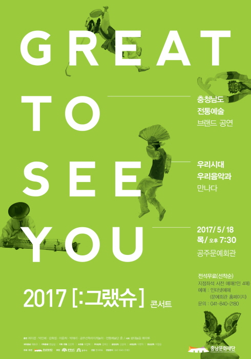 그랬슈 공연기간2017-05-18 공연예매2017-05-04 15:00 ~ 2017-05-18 15:00 공연시간19:30 / 70분 공연장소대공연장 티켓정보무료공연 관람등급7세이상 입장가능 공연주최충남문화재단 공연문의041-840-2227 공지사항 공연소개 프로그램 출연진