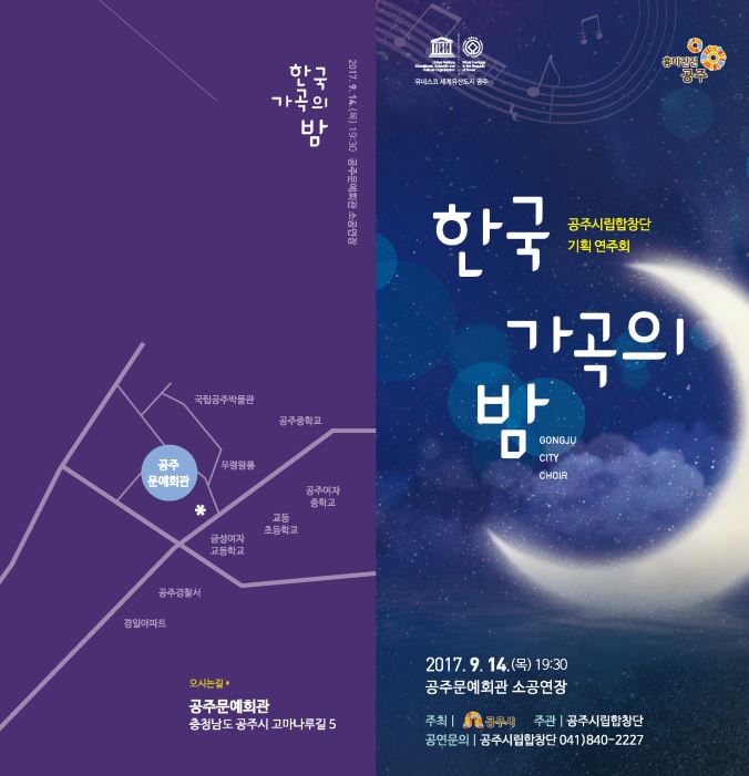 기획공연 공주시시립합창단 기획 연주회 『한국 가곡의 밤』 공연기간2017-09-14 공연시간19시30분 / 70분 공연장소소공연장 티켓정보전석무료 관람등급초등학교 이상 공연주최문화시설 사업소 공연문의041-840-2207 공지사항 공연소개 프로그램 출연진