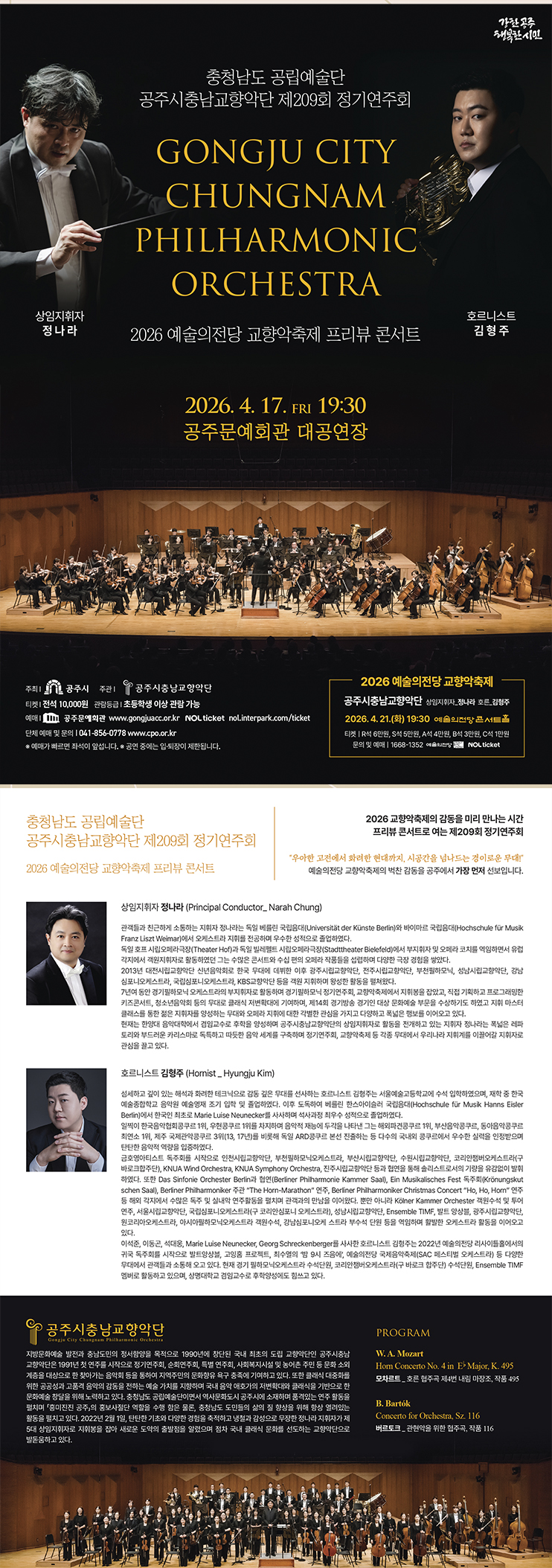 - 교향악단 정기회원 50% 할인 (041-856-0778 전화예매)