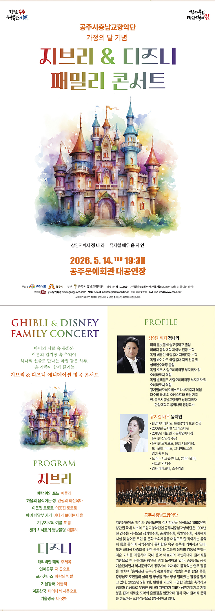 - 교향악단 정기회원 50% 할인 (041-856-0778 전화예매)
