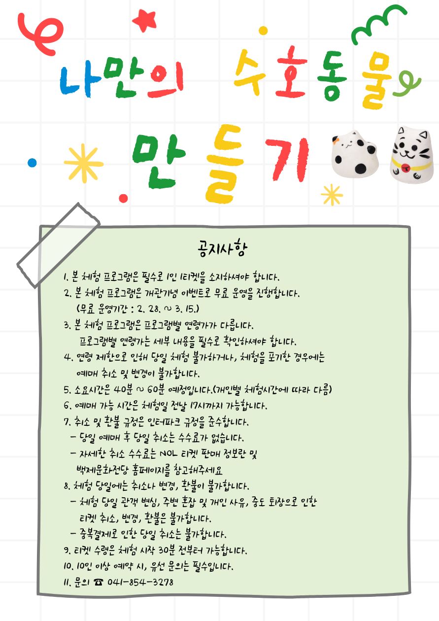 [개관기념 무료운영] 백제문화전당 무릉공방 나만의 수호동물 만들기 (~3.15)