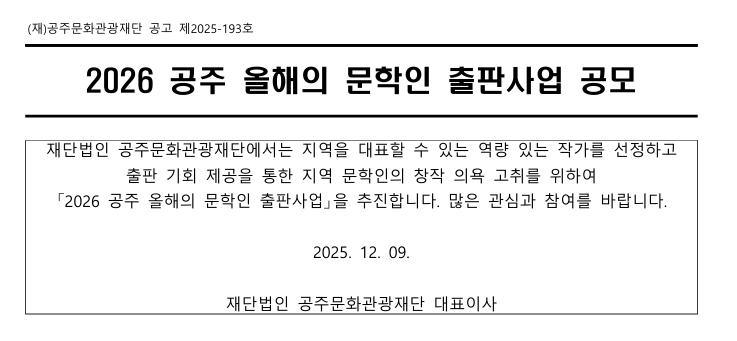 2026 공주 올해의 문학인 출판사업 공모