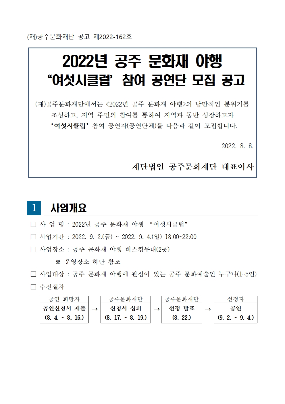 2022 공주 문화재 야행 '여섯시클럽' 참가자 모집