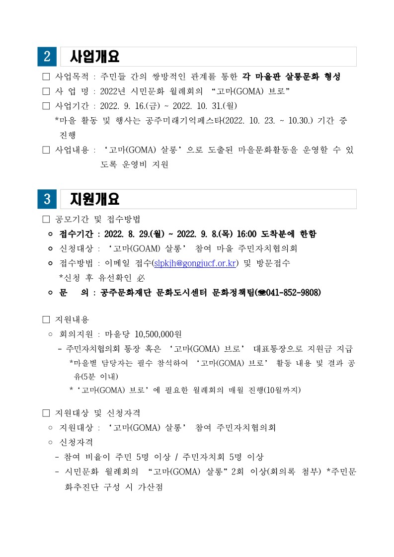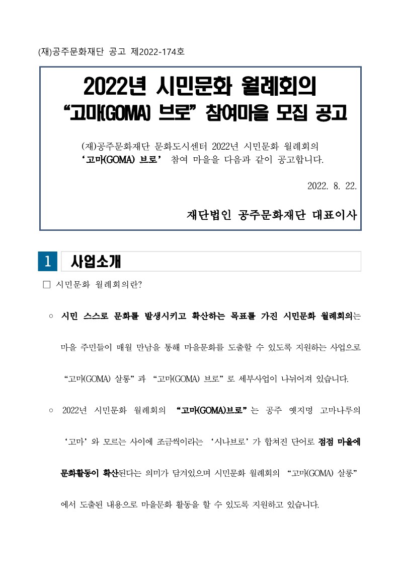 2022년 시민문화 월례회의 "고마(GOMA) 브로" 참여마을 모집
