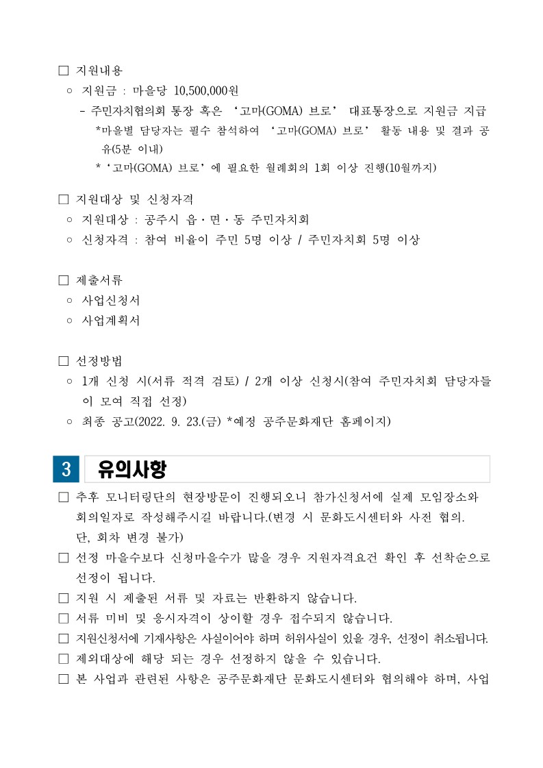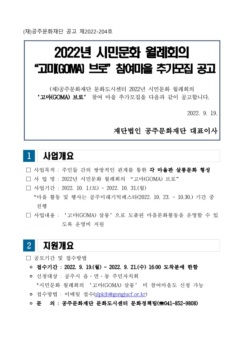 2022년 시민문화 월례회의 “고마(GOMA) 브로” 참여마을 추가모집 공고