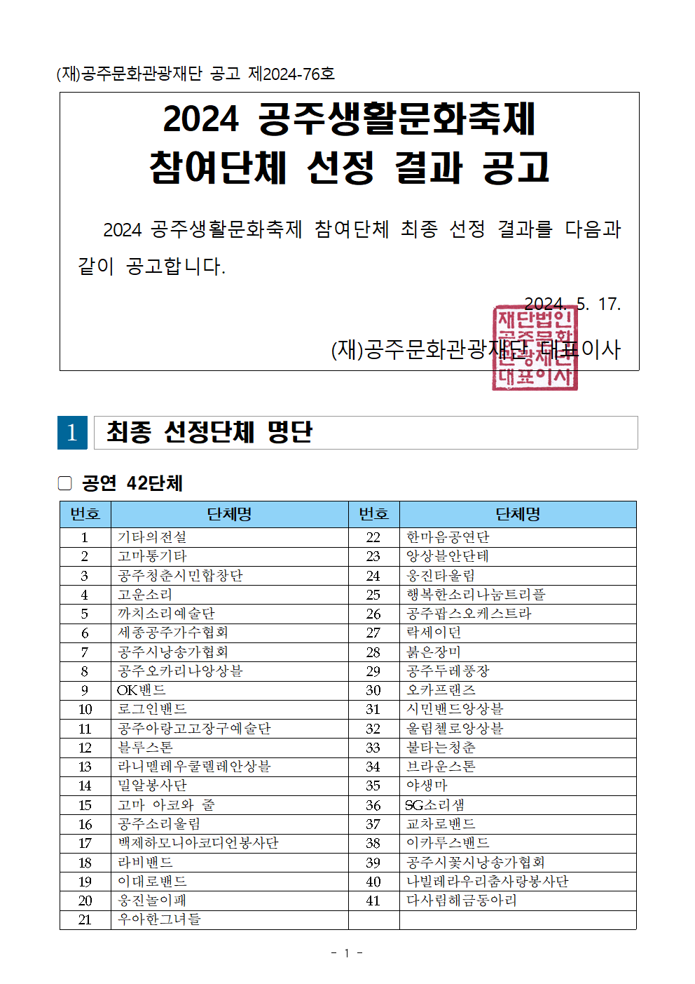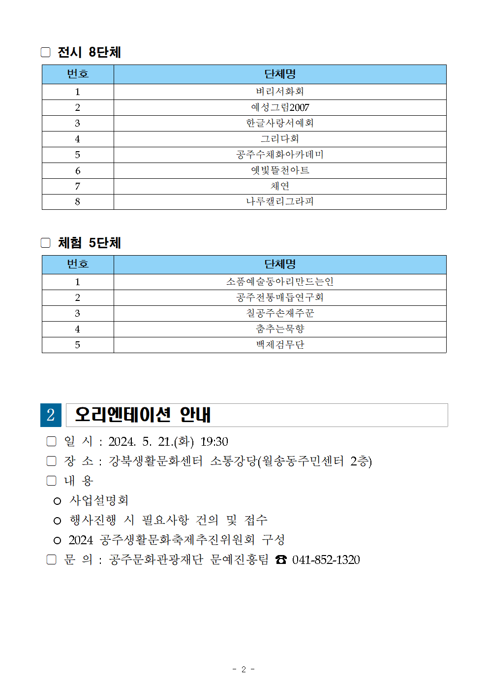 2024 공주생활문화축제 참여단체 선정결과 및 오리엔테이션 안내