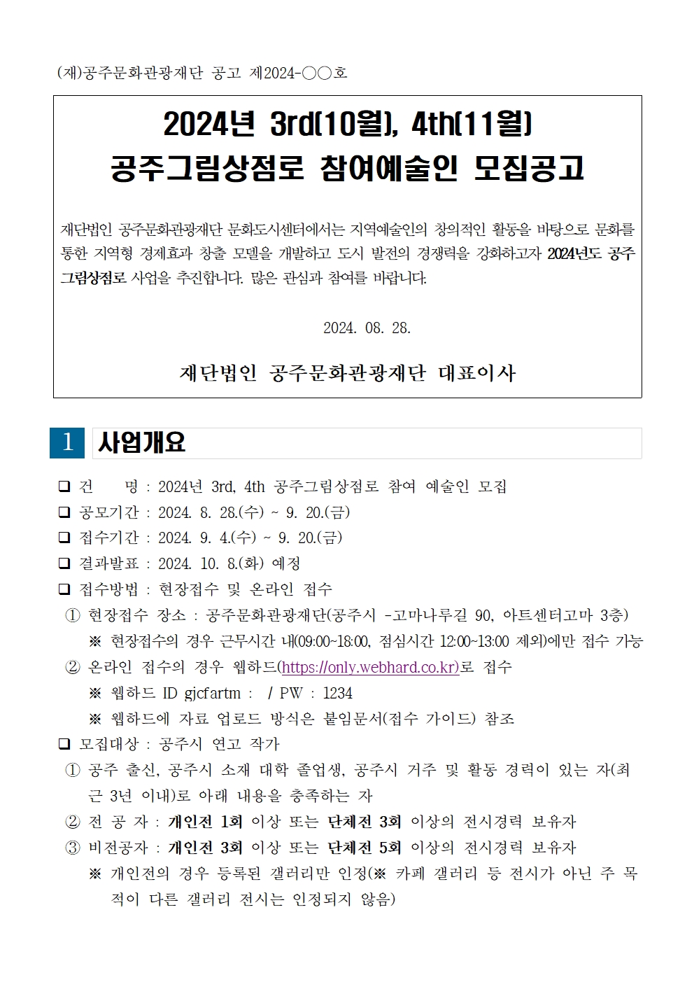 2024 3rd(10월), 4th(11월) 공주그림상점로 참여예술인 모집공고