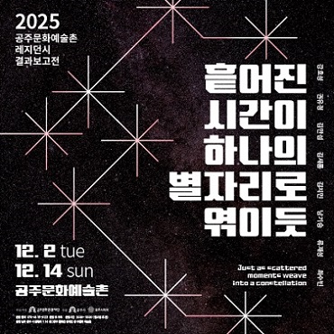 알려드립니다 NEWS & NOTICE 공지사항 입찰공고 채용공고 보도자료 More 공지사항 공지사항 (재)공주문화관광재단 금고지정 공고 2025-11-14 공지사항 (재)공주문화관광재단 금고지정 제안서 제출안내 재공고 2025-11-03 공지사항 (재)공주문화관광재단 금고지정 제안서 제출안내 공고 2025-10-22 공지사항 2025 미래유산도시브랜딩 공주 핫스팟 포토존: 가을, 겨울편 촬영 참여자 모집 2025-09-29 입찰공고 입찰공고 2026 공주 신진 문학인 출판사업 공모 2025-12-09 입찰공고 2026 공주 올해의 문학인 출판사업 공모 2025-12-09 입찰공고 백제문화전당 브랜드 상설공연 (가제)<불꽃의 춤> 배우(무용수) 오디션 공고 2025-12-03 입찰공고 2026 지역대표예술단체 지원사업 사전공모 참여 예술단체 선정 결과공고 2025-12-01 채용공고 채용공고 2025년 (재)공주문화관광재단 제2회 직원(기술직) 채용 논술전형 결과 공고 2025-12-09 채용공고 (재)공주문화관광재단 제2회 직원(기술직) 채용 서류전형 합격자 및 논술전형 안내 공고 2025-12-01 채용공고 2026 공주문예회관 하우스 부매니저 및 공연장 안내원 모집 2025-11-14 채용공고 2025년 (재)공주문화관광재단 제2회 직원(기술직)채용 공고 2025-11-11 보도자료 보도자료 2024 꿈의 오케스트라, 꿈의 무용단 공주 여름캠프 성료 2024-08-16 보도자료 금난새와 함께하는 브런치 콘서트 <살롱 드 공주II> 공주문예회관 개최 2024-08-13 보도자료 미래유산 상품 개발자들의 충청남도 관광기념품공모전 특선 수상 성과 발표 2024-08-12 보도자료 2024 야간상설공연 개최 2024-08-09 POPUP ZONE 문화사업 바로가기 관광사업 바로가기 대관안내 바로가기