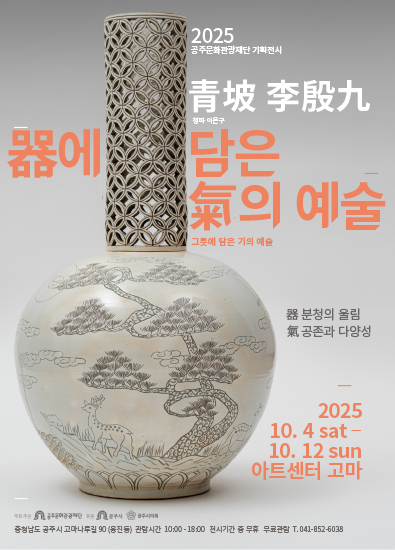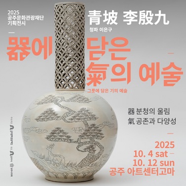 기관위치 공주문화관광재단 운영시설 위치 정보를 안내해드립니다. 공주문화관광재단(아트센터고마) 공주문예회관 호서극장(예정) 백제문화전당(예정) 강북생활문화센터 공주문화예술촌 SNS소식 공주문화관광재단의 다양한 소식을 만나보세요. 청파 이은구_器에 담은 氣의 예술 공주문화관광재단 홍보영상